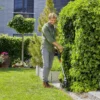 De zwenkbare trimmerkop maakt het mogelijk om overhangende gazonranden nauwkeurig verticaal te knippen.