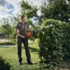 Deze duurzame accuheggenschaar levert hoogwaardige sneden met een hoge capaciteit. Het lichtgewicht, ergonomische ontwerp heeft een uitgebalanceerde handgreep aan de achterkant en een keuzeschakelaar om het vermogen en de looptijd aan te passen aan de uit te voeren taak.