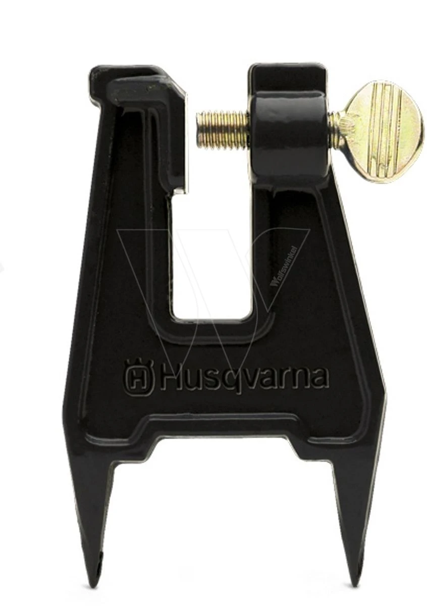 Om de kettingzaag veilig vast te zetten in een boomstam of een blok hout als u vijlt.