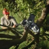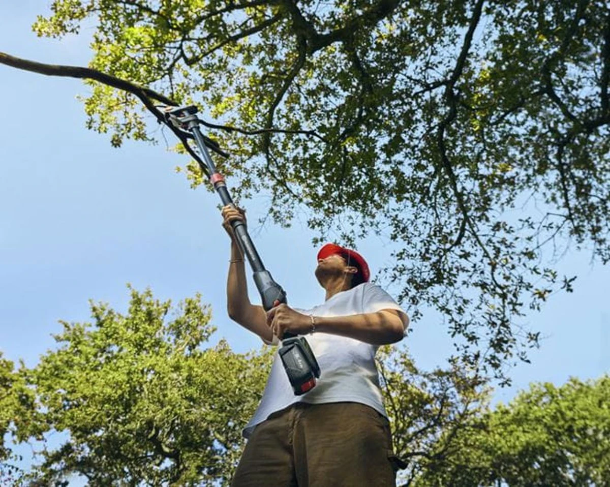 Een accusnoeizaag voor gebruik met of zonder verlengstok. Bevestig en verstel de stok eenvoudig tot 1,7 m, zodat u gemakkelijker bij hogere takken kunt. Gebouwd op onze bewezen kettingzaag expertise, is hij robuust genoeg om gemakkelijk takken van 75mm breed te zagen. Uitgerust met een softgrip handgreep met een eenvoudige en gereedschapsloze vervanging van ketting en zaagblad en verbeterde veiligheid met de automatische uitschakeling wanneer hij onbeheerd wordt achtergelaten. Opbergen is eenvoudig met de meegeleverde haak en onderdeel van het 18V POWER FOR ALL accusysteem. Bio-kettingolie inbegrepen in de verpakking (50ml).